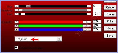Sélection/Transformer la sélection en calque 10 - Effets/AP Lignes/ Silverlining /Dotty Grid réglages suivants :