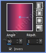 14 - Placer en premier-plan la couleur #e54476 et en arrière-plan la couleur #2f223eConfigurer un dégradé linéaire/Angle : 90°/ Répétition: 1/Inverser coché