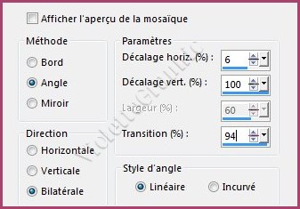 11 - Effets/Effets d'image/Mosaïque sans jointure réglages suivants :