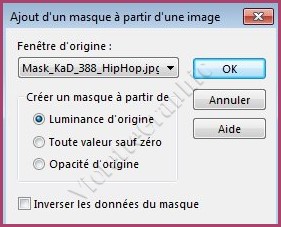 6 - Activer le masque Mask_KaD_388_HipHop.jpg Calques/Nouveau calque de masque/à partir d'une image/Ajout d'un masque à partir d'une image sélectionner le masque Mask_KaD_388_HipHop.jpg