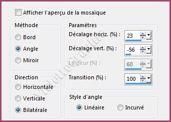 3 - Effets/Effets d'image/Mosaïque sans jointure réglages suivants :
