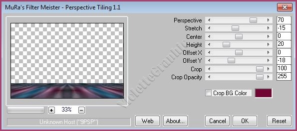 13 - Calques/Dupliquer Effets/Mura's Meister/perspectives Tiling réglages suivants :