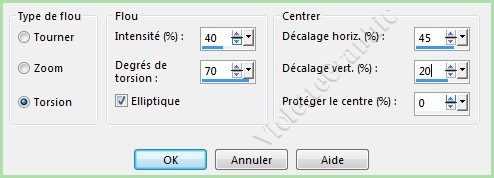 12 - Image/Redimensionner à 50%/décocher " Redimensionner tous les calques" **Réglages/Flou/Flou radial réglages suivants :