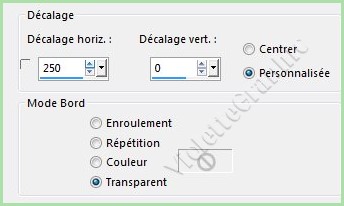 16 - Effets/Effets d'image/Décalage réglages suivants : Hor.= 250/ Vert.= 0