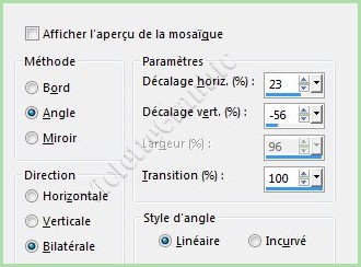 23 - Effets/Effets d'image/Mosaïque sans jointure réglages suivants: