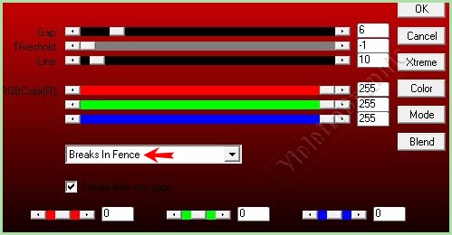 19 - Effets/AP Lignes/ Silverlining /Breaks In Fence réglages suivants :