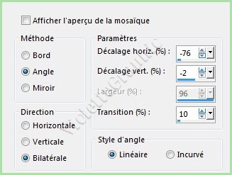 18 - Effets/Effets d'image/Mosaïque sans jointure réglages suivants: