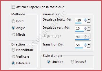 ** Effets/Effets d'image/Mosaïque sans jointure réglages suivants: