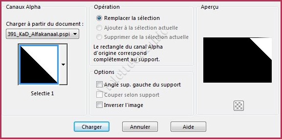 6 - Sélection/Charger/Enregistrer une sélection/charger à partir Canal Alpha Charger la sélection 1