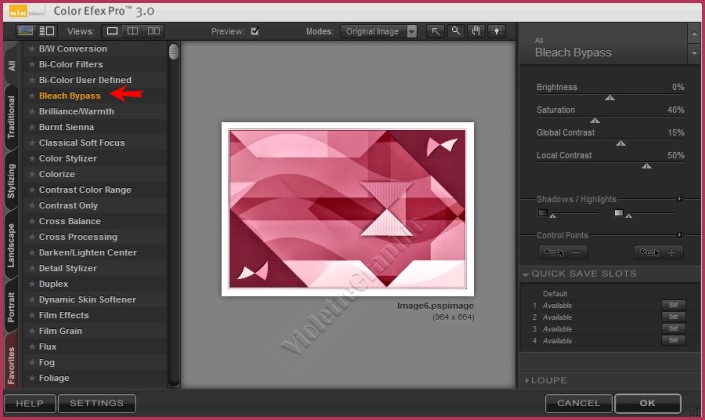 43 - Activer le calque inférieur **Effets/ Nik Software / Color Efex Pro / Bleach Bypass / Standard