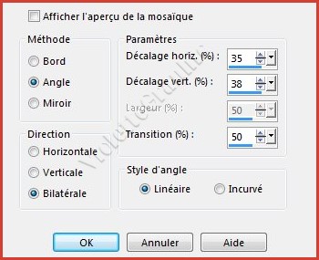 3 - Effets/Effets d'image/Mosaïque sans jointure réglages suivants: