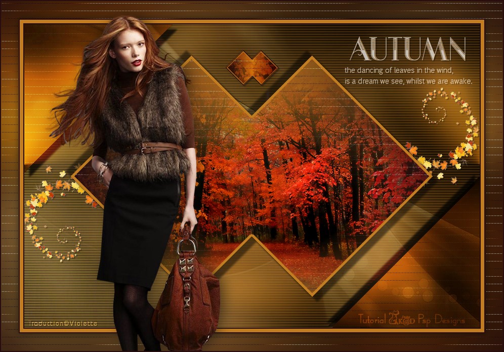 Merci beaucoup à Karin de m'avoir donné l'exclusivité de la traduction française de ses tutoriels*** *** Ces traductions m'appartiennent Il est strictement interdit de les copier ou de les distribuer sur le Net Les tutoriels sont la propriété de leurs auteurs *** 400 - Autumn vous trouverez l'original de ce tutoriel ICI *** Ce tutoriel a été réalisé dans PSP X8 mais peut être effectué dans les autres versions PSP Ces traductions m'appartiennent Il est strictement interdit de les copier ou de les distribuer sur le Net *** Pour faire ce tutoriel vous aurez besoin : Tubes : Autumn_Leaves_Decoration_PNG_Clipart ICI KaD_Woman_103 KaD_AutumScenery6 400_Text1 400_Deco1 Background : 400_KaD_Background Masques: Narah_Mask_1000 sélection_alpha : 400_KaD_Alfakanaal *** Filtres : ICI Van der Lee – Unplugged L en K Landksite of wonders / L&K’s / Zitah *** *** Les tubes sont offerts à usage personnel Vous n'avez pas la permission de placer ces tubes sur un autre site sans la permission du créateur ***