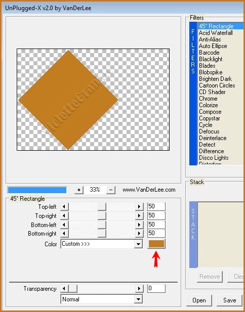3 - Calques/Nouveau calque Effets/ Van der Lee / Unplugged /Defocus réglages suivants:couleur #c27d20