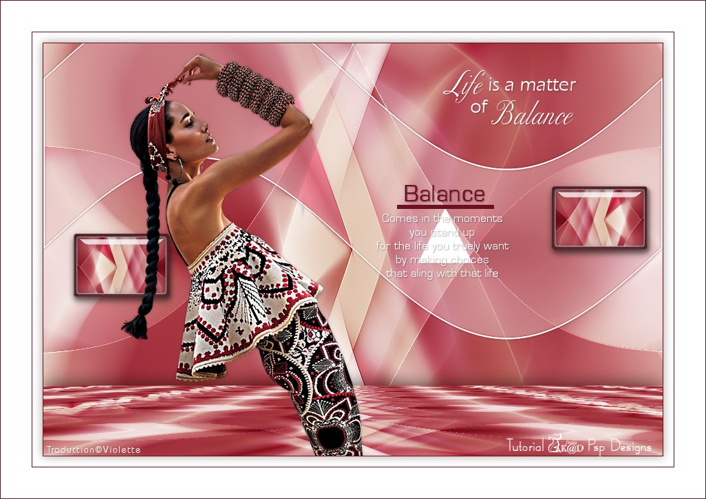 Merci beaucoup à Karin de m'avoir donné l'exclusivité de la traduction française de ses tutoriels*** *** Ces traductions m'appartiennent Il est strictement interdit de les copier ou de les distribuer sur le Net Les tutoriels sont la propriété de leurs auteurs *** 407 - Balance vous trouverez l'original de ce tutoriel ICI *** Ce tutoriel a été réalisé dans PSP X9 mais peut être effectué dans les autres versions PSP Ces traductions m'appartiennent Il est strictement interdit de les copier ou de les distribuer sur le Net *** Pour faire ce tutoriel vous aurez besoin : Tubes : KaD_Woman_106 407_KaD_Text1 407_KaD_Text2 Sélection: 407_KaD_Alfakanaal .pspimage Preset : 407_KaD_Glass *** Filtres : ICI VanDerLee / Unplugged X Murha's Meister / Perspective Tiles