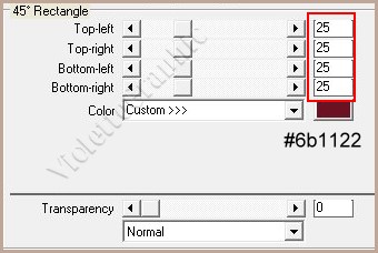17 - remplir de couleur #6b1122 Sélection/modifier/Contracter de 20 pixels **Appuyer sur la touche "Suppr" Sélection/Ne rien sélectionner