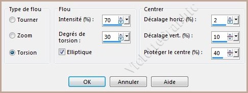 5 - Réglages/Flou/Flou radial réglages suivants :