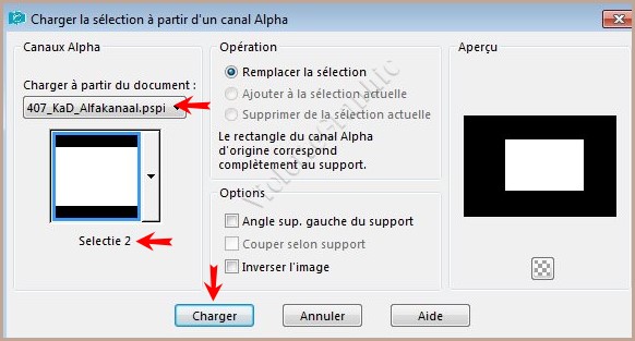 16 - Calques/Nouveau calque **Sélection/Charger/Enregistrer une sélection/charger à partir Canal Alpha Charger la sélection 2