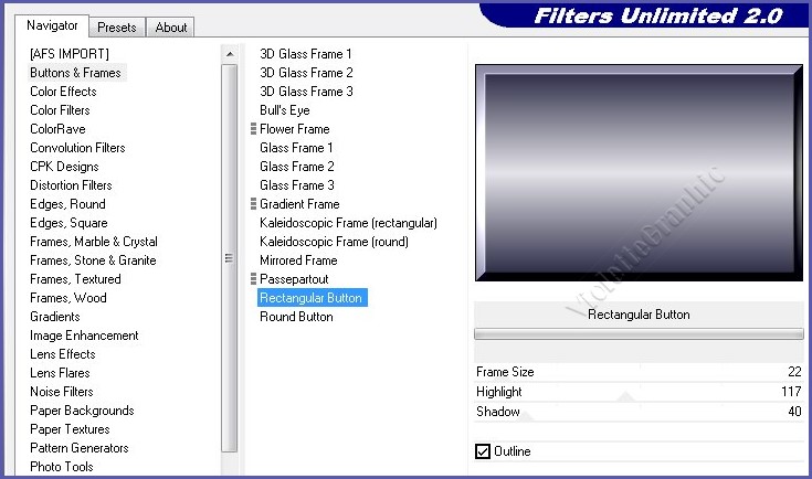 3 - Effets/Unlimited 2.0 /Buttons & Frames /Rectangular Button réglages par défaut
