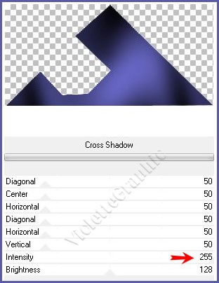 8 - Effets/Graphics Plus /Cross Shadow réglages par défaut sauf intensité à 255