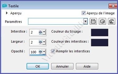 12 - Effets /Effets de texture/ Textile réglages suivants :
