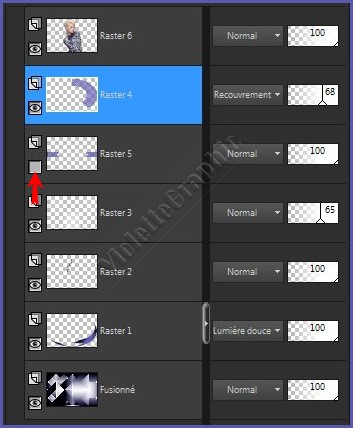 13 - Activer le tube 408_KaD_Element1.png Edition/Copier/Edition/Coller comme nouveau calque Il est à sa place Mode de fusion: Recouvrement Opacité à 65%