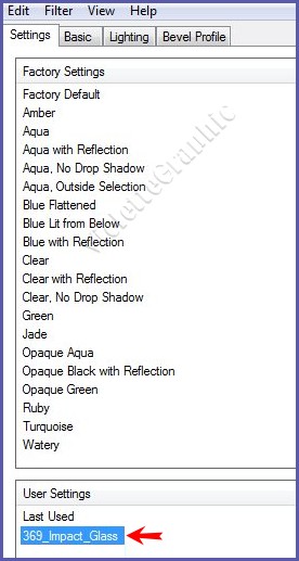 19 - Revenir sur votre travail en cours Edition/Coller comme nouveau calque Effets/ Alien Skin / Eye Candy 5 Impact /Glass Appliquer le preset 408_KaD_Glass