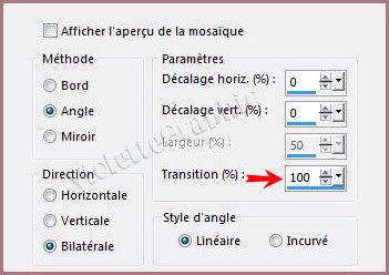 4 - Effets/Effets d'image/Mosaïque sans jointure réglages par défaut mais transition: 100