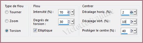 5 - Réglages/Flou/Flou radial réglages suivants :