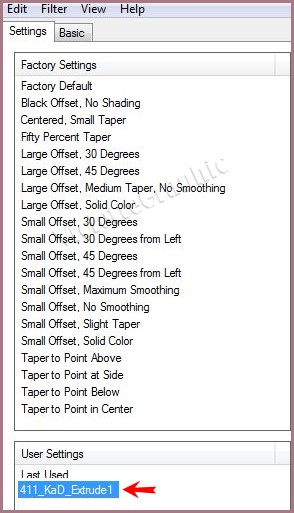 **Effets/Alien Skin /EyeCandy 5 /Impact /Extrude Appliquer le preset 411_Kad_Extrude .f1s