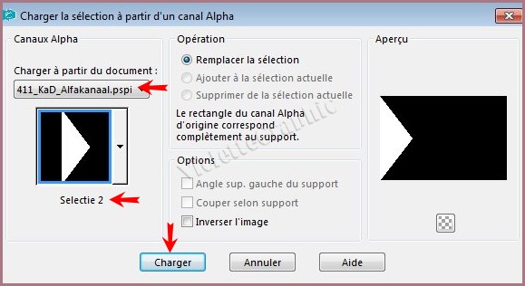 13 - Activer le calque Inférieur **Sélection/Charger/Enregistrer une sélection/charger à partir Canal Alpha Charger la sélection 2