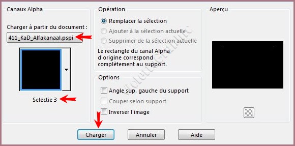 27 - Calques/Nouveau Calque **Sélection/Charger/Enregistrer une sélection/charger à partir Canal Alpha Charger la sélection 3