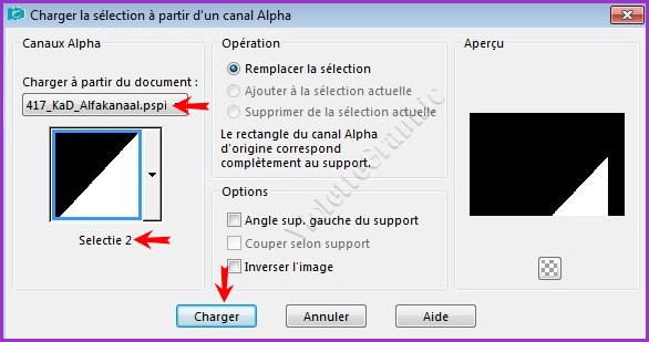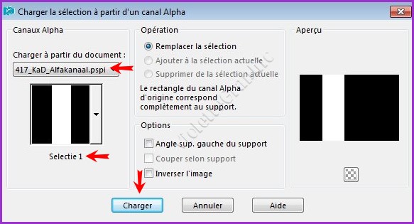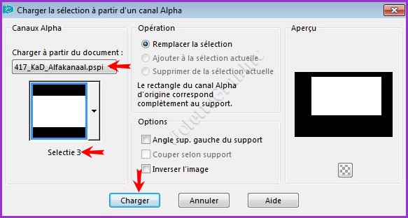 16 - Calques/Nouveau calque **Calques/Réorganiser/Placer en haut de la pile ** Sélection/Charger/Enregistrer une sélection/charger à partir Canal Alpha Charger la sélection 3