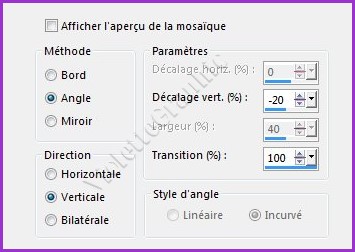 15 - Effets/Effets d'image/Mosaïque sans jointure réglages suivants: