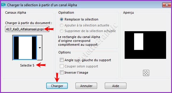 23 - Activer le calque juste en dessous ** Sélection/Charger/Enregistrer une sélection/charger à partir Canal Alpha Charger la sélection 5