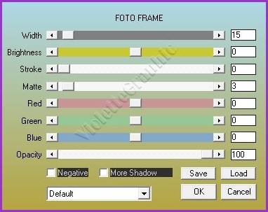 28 - Effets/Effets 3D/Ombre Portée : 0/0/40/20 couleur #000000 Sélection/Inverser **Effets / Cadres AAA / Foto Frame réglages suivants :