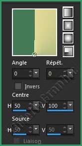 **Dans la Palette de Style Configurer un dégradé radial angle: 0°/Répétition : 0/Inverser non coché Centre: hor.= 50/ vert.= 100