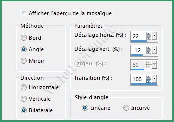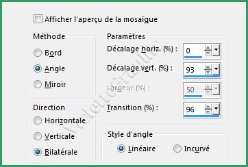 16 - Effets/Effets d'image/Mosaïque sans jointure réglages suivants: