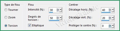 5 - Réglages/Flou/Flou radial réglages suivants :