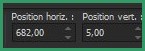 17 - Activer le calque supérieur Image/Redimensionner à 75%/décocher " Redimensionner tous les calques" **Activer l'outil sélecteur placer ces réglages X: 682 / Y: 5