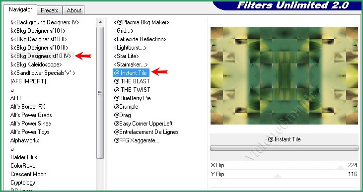 24 - Activer le calque inférieur **Calques/Dupliquer Effets/Unlimited/ &<BKG Designers sf10 IV> @ Instant Tile réglages suivants: