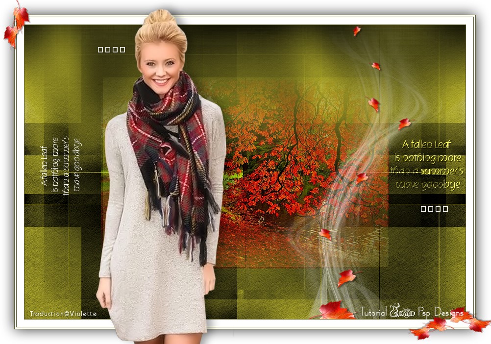 Merci beaucoup à Karin de m'avoir donné l'exclusivité de la traduction française de ses tutoriels*** *** Ces traductions m'appartiennent Il est strictement interdit de les copier ou de les distribuer sur le Net Les tutoriels sont la propriété de leurs auteurs *** 422 - A Fallen Leaf vous trouverez l'original de ce tutoriel ICI *** Ce tutoriel a été réalisé dans PSP X9 mais peut être effectué dans les autres versions PSP Ces traductions m'appartiennent Il est strictement interdit de les copier ou de les distribuer sur le Net *** Pour faire ce tutoriel vous aurez besoin : Tubes Karin : KaD_AutumScenery6 KaD_Herfstblad1 422_KaD_Text1 422_KaD_FallingLeaves1 422_KaD_Deco1 Bakground : 422_KaD_Background Masque: 422_KaD_Mask ( ouvrir dans votre PSP et minimiser ) Sélection: 422_KaD_Alfakanaal .pspimage *** Filtres : ICI Unlimited 2.0: Texture Paper Unlimited 2.0:& <Concepteurs de fond IV>@NightShadow VM Toolbox / Grid/ Zoom Blur/ Square Blur Mock/ Windo Adjust/ Variations *** *** Les tubes sont offerts à usage personnel Vous n'avez pas la permission de placer ces tubes sur un autre site sans la permission du créateur ***