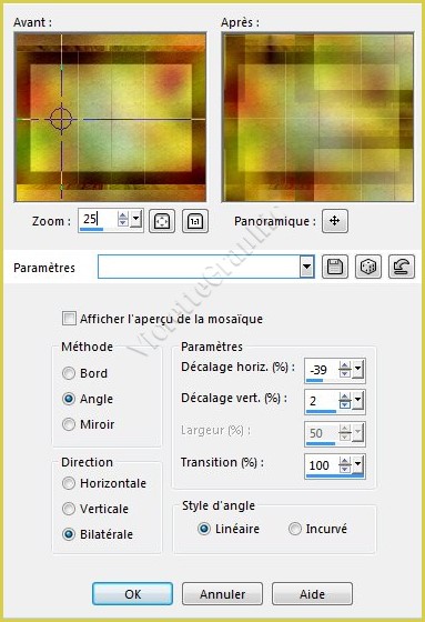 8 - Calques/Fusionner les calques visibles ** Effets/Effets d'image/Mosaïque sans jointure réglages suivants: