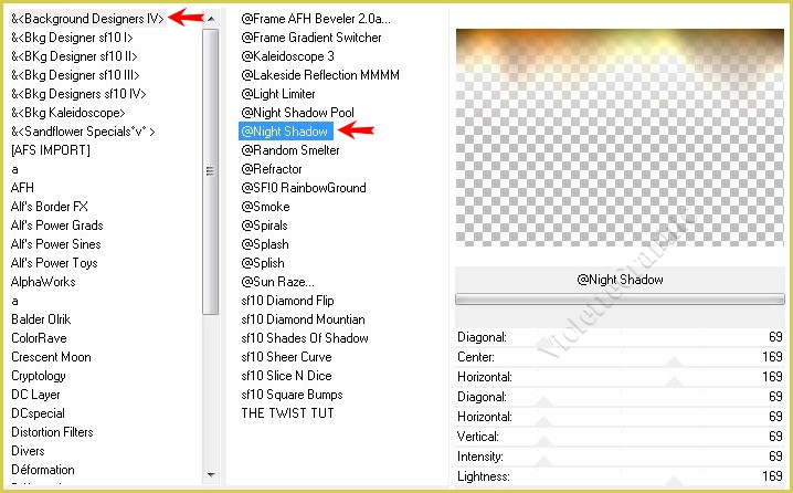 14 - Effets/Unlimited 2.0/ & <Background Designers IV>/ @NightShadow réglages par défaut: