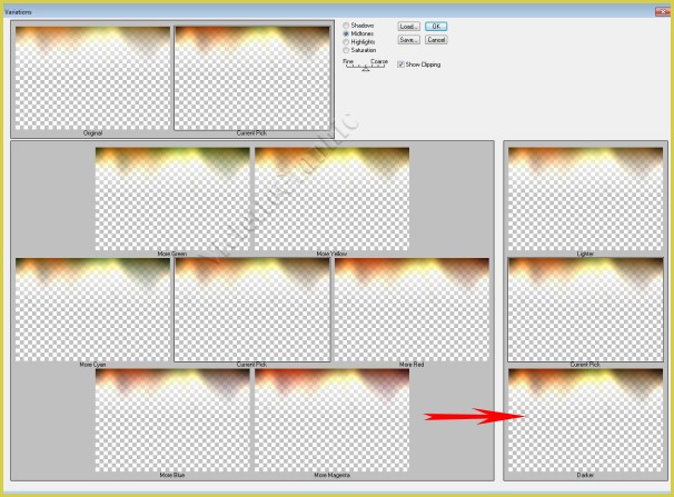 15 - Effets/Adjust/Variations réglages suivants: Cliquez 2 fois sur Darker, puis OK
