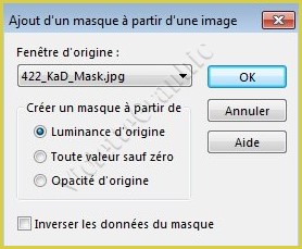 17 - Calques/Nouveau calque Remplir de couleur de premier-plan ** Activer le masque 422_KaD_Mask.jpg Calques/Nouveau calque de masque/à partir d'une image/Ajout d'un masque à partir d'une image sélectionner le masque 422_KaD_Mask.jpg