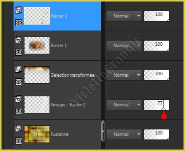 19 - Ouvrir le tube 422_KaD_FallingLeaves1.png Supprimer le filigrane Edition/Copier/Edition/Coller comme nouveau calque **Calques/Réorganiser/Placer en haut de la pile **Activer l'outil sélecteur placer ces réglages X: 579 / Y: 0