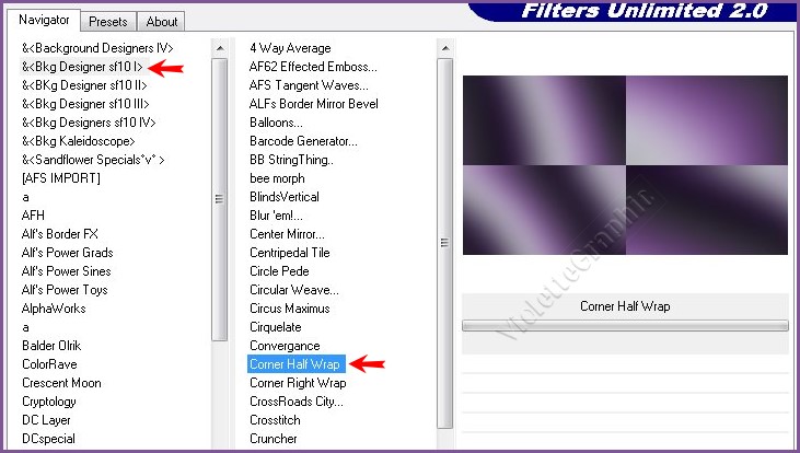 4 - Effets / Unlimited/ & <Bkg Designer sf10 I> /Corner Half Wrap réglages suivants :