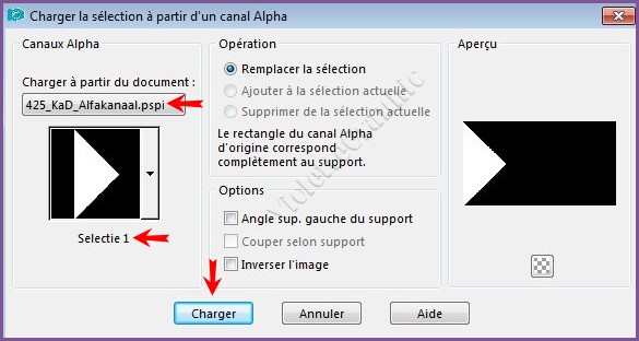 9 - Sélection/Charger/Enregistrer une sélection/charger à partir Canal Alpha Charger la sélection 1