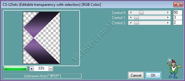 Sélection/Transformer la sélection en calque **Effets /Carolaine et Sensibilité / CS-LDots réglages suivants :