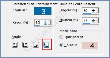 5 - Calques/Dupliquer **Images/Effet d'images/Enroulement de page réglages suivants :